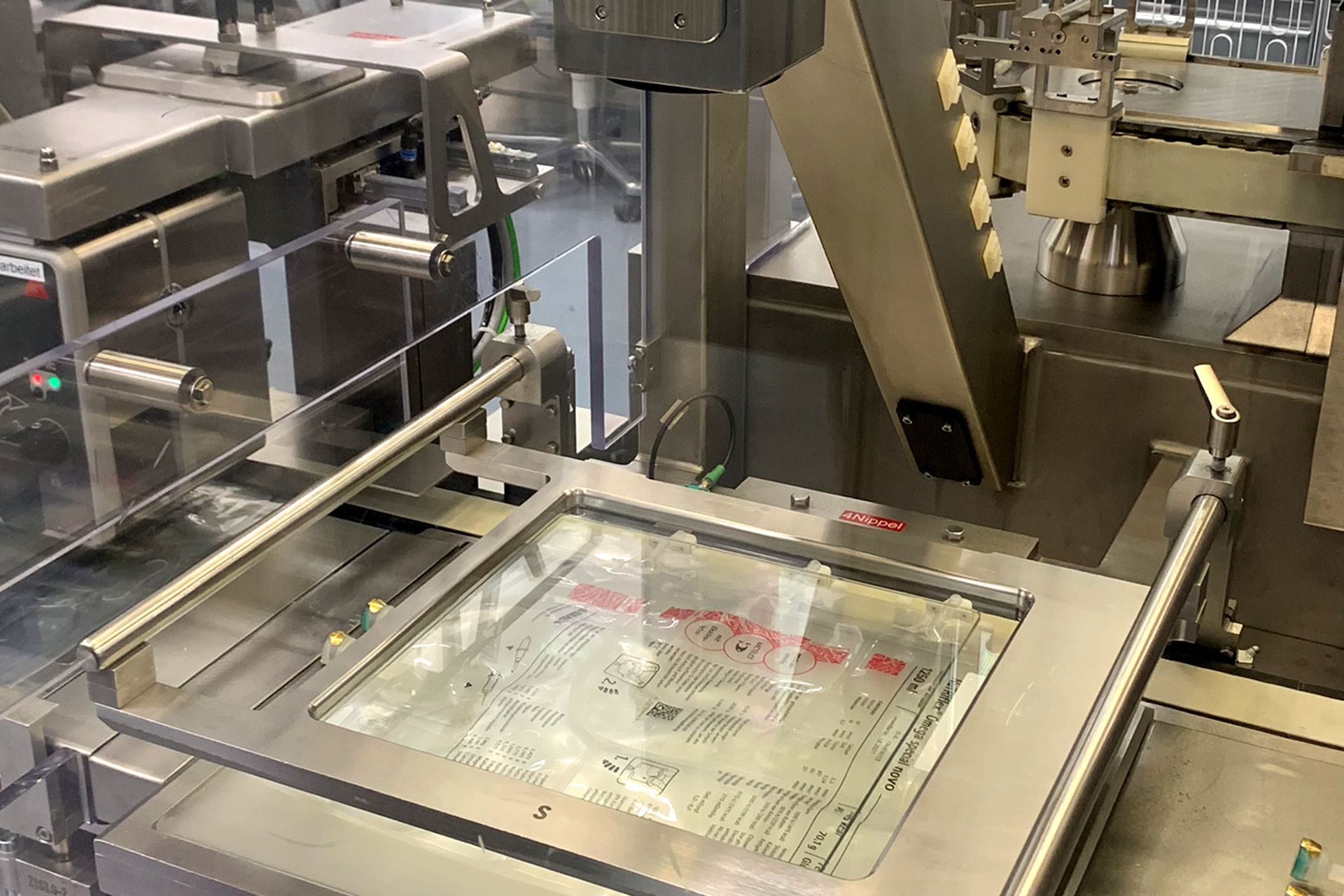 Neben der Qualitätsprüfung auf Partikel, Defekte am Beutel, Ports, Nähten und an der Bedruckung gehören auch die Verifizierung von Codes zum Prüfspektrum.
