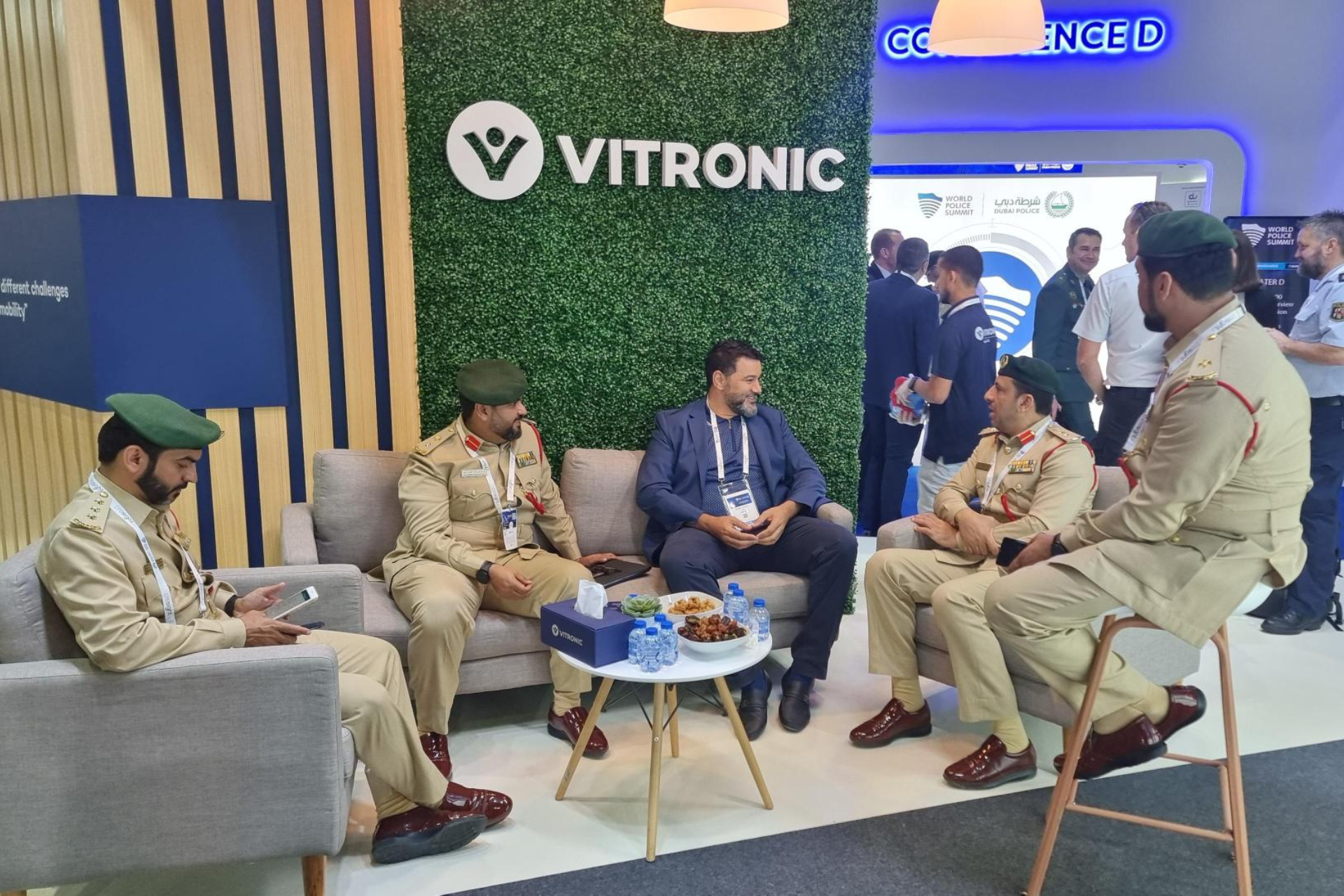 Besonders starken Zulauf erhielt der 84 Quadratmeter große und nach allen Seiten offene Stand von VITRONIC Middle East, der ganz in der Nähe des Standes der Polizei von Dubai aufgebaut war. Die Mitarbeiter begrüßten hier nicht nur Kunden und Partner, sondern knüpften auch vielversprechende neue Kontakte. Dabei kam es zu intensiven Diskussionen zu Themen wie Verkehrssicherheit und der Zukunft des Verkehrsmanagements.